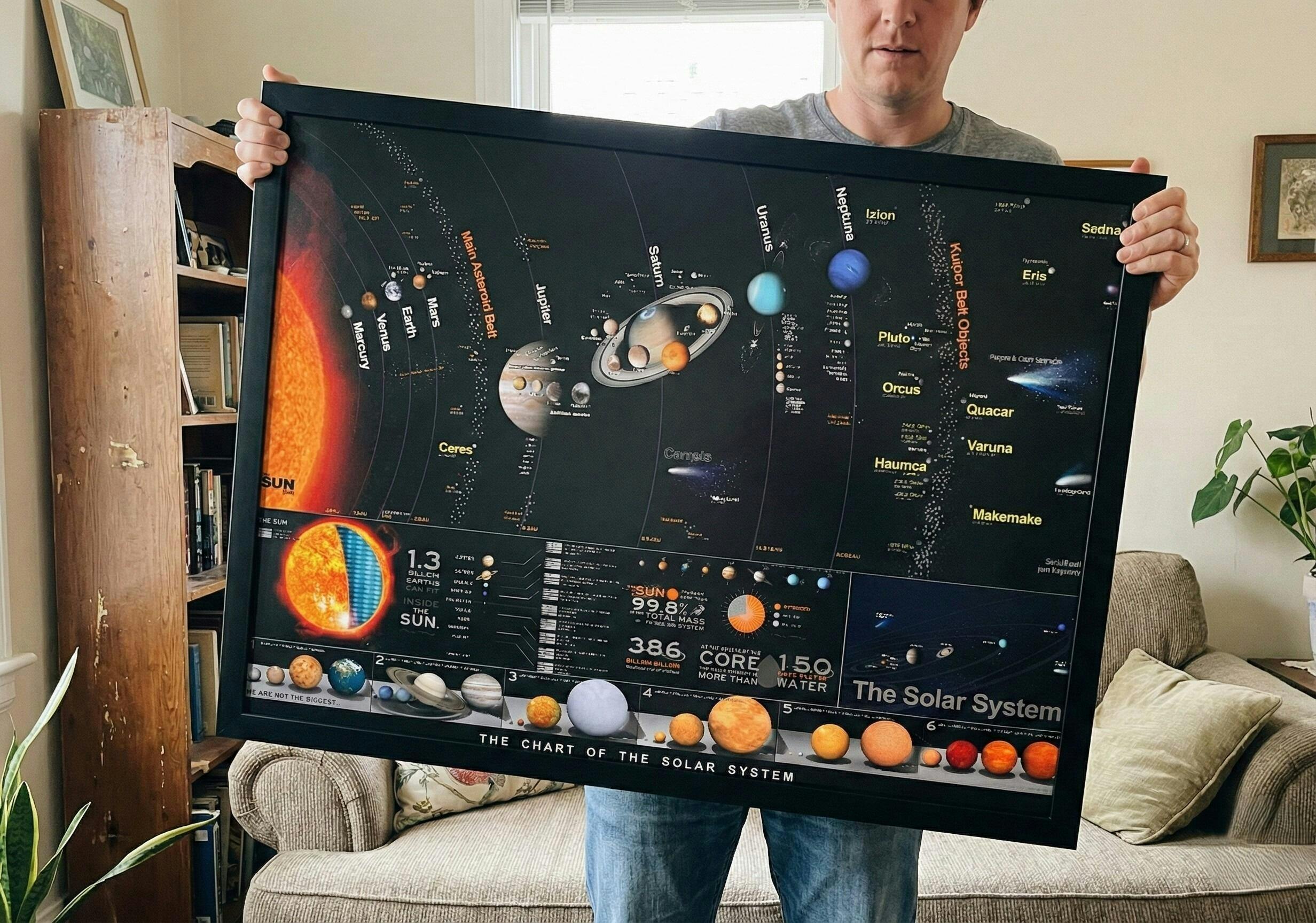 This chart aims to detail (pretty much) everything we know so far about our Solar System. An awesome way to learn about the place we live in (and decorate your room as well)!